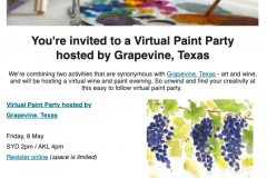 Whilst New Zealanders and Australians were confined to their homes in May 2020, Canuckiwi on behalf of the Grapevine Convention & Visitors Bureau partnered with Paintvine to host a virtual wine and paint event.